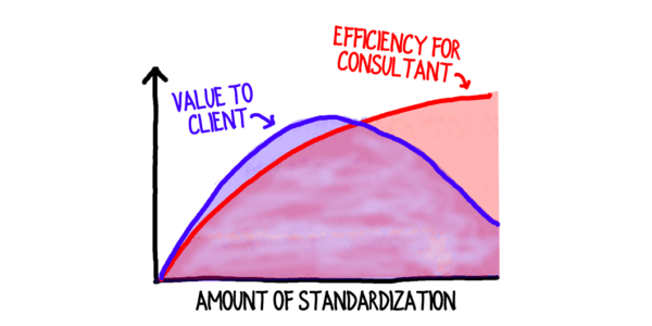 Interesting question, Steven. Generally speaking, I haven’t found that clients particularly value uniqueness in deliverables/outputs. They care about relevance, value, and whether it helps them solve their problem/achieve their aspiration. No one has ever said to me, “That’s a terrific recommendation and it will really move our business forward, but I wish you’d told me something unique and fresh instead.” Of course, if part of the value they’re looking for is uniqueness, then you can build that into your templates too.