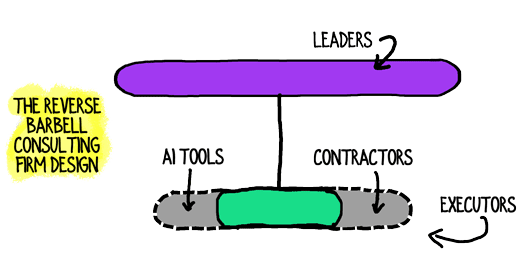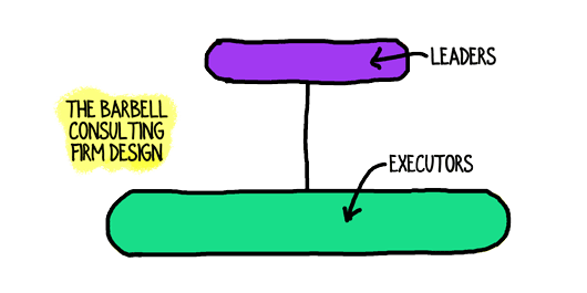 Quite a few boutique consulting firms operate in a variation of the flat organization: the barbell.