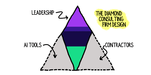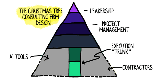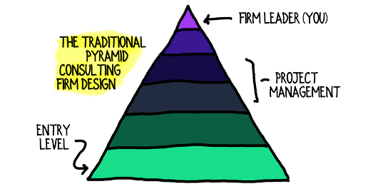 Huge consulting firms follow this model with a few high-paid pharaohs reigning atop a cascade of increasingly junior people.